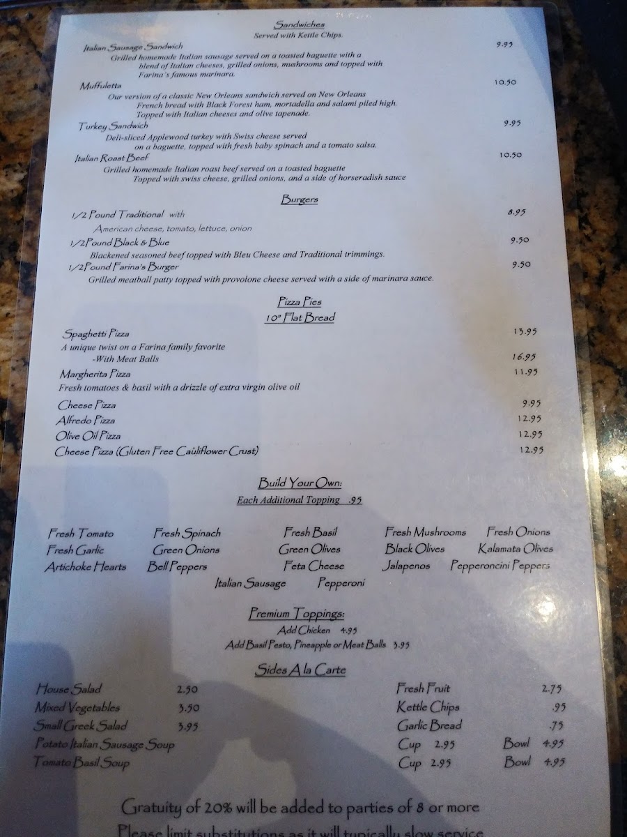 The menu is a delightful mix of Italian-inspired dishes, with highlights including their spaghetti and baked chicken Alfredo, which customers rave about. Diners can also enjoy unique offerings like fettuccine Alfredo and fresh pasta salads, accommodating diverse palates at accessible prices. Whether you’re dining with family or hosting a small event on their lovely patio, you’re guaranteed a satisfying experience with delicious cuisine.